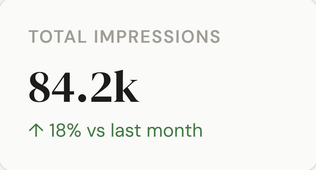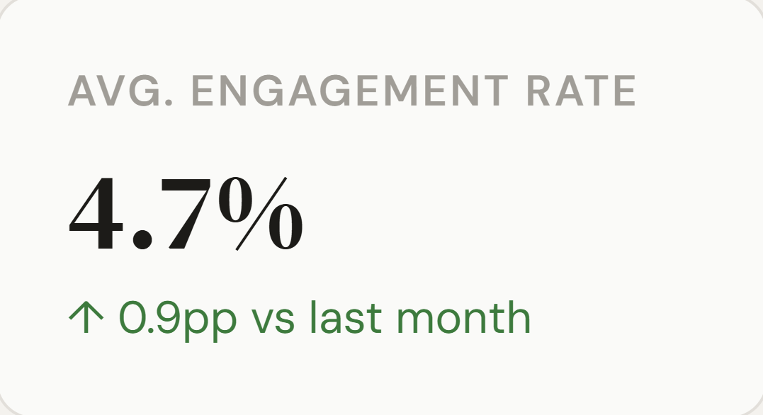 Track performance across all your channels in one dashboard. Get a monthly summary with clear, actionable suggestions to improve your strategy — no guesswork.